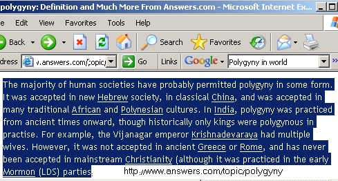 وعلى أي حال فإن ظاهرة تعدد الزوجات في مصر لا تستدعي كل هذا الكلام إذ أنها لا تلمس إلا حوالي 3% من الزيجات (تم حسابها من جدول توزيع السكان بحسب الحالة الزواجية بحسب بيانات تعداد عام 1996). لا أعتقد أن 3% هو رقم يكفي لأن نسميها ظاهرة من الأساس.