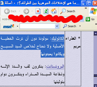 وكان إستدلال هذا المعتوه بقول الله تعالي ( لقد كفر الذين قالوا إن الله ثالث ثلاثه ) وقال هذا المعتوه أن الآيه تقصد المريميين ( والكلام علي لسان المعتوه زكريا بطرس ) وأنه كان هناك طائفه تعبد مريم علي إنها أم الاله بدعوي أن الله تزوج مريم وأنجبوا المسيح ( سبحان الله عما يقولون ) ثم أستشهد بالآيه ((وَإِذْ قَالَ اللّهُ يَا عِيسَى ابْنَ مَرْيَمَ أَأَنتَ قُلتَ لِلنَّاسِ اتَّخِذُونِي وَأُمِّيَ إِلَـهَيْنِ مِن دُونِ اللّهِ قَالَ سُبْحَانَكَ مَا يَكُونُ لِي أَنْ أَقُولَ مَا لَيْسَ لِي بِحَقٍّ إِن كُنتُ قُلْتُهُ فَقَدْ عَلِمْتَهُ تَعْلَمُ مَا فِي نَفْسِي وَلاَ أَعْلَمُ مَا فِي نَفْسِكَ إِنَّكَ أَنتَ عَلاَّمُ الْغُيُوبِ )) فتغني معه الشمطاء تاهت متولي لتقول أن المسيح أقر أنه لم يمر أحد بعبادة مريم اه صح يا بونا .