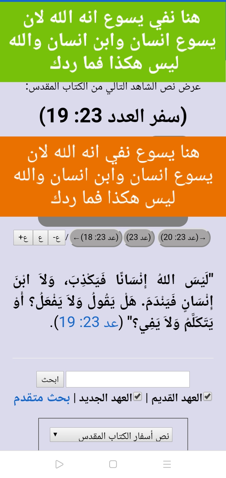 الموضوع: هنا ينفي يسوع انه الله لان الله ليس انسان ولا ابن انسان وهو كذلك