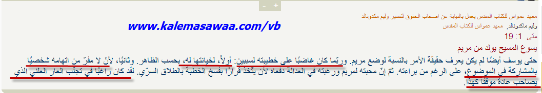 نص متى 1 : 19 ---> " فَيُوسُفُ رَجُلُهَا إِذْ كَانَ بَارًّا، وَلَمْ يَشَأْ أَنْ يُشْهِرَهَا، أَرَادَ تَخْلِيَتَهَا سِرًّا. "