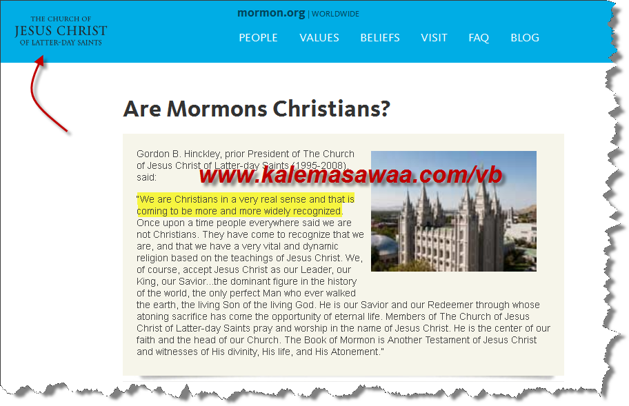 للردّ عليهم نقول : نـــعم المـــورمون مسيحيون و بشهادة مواقعهم !