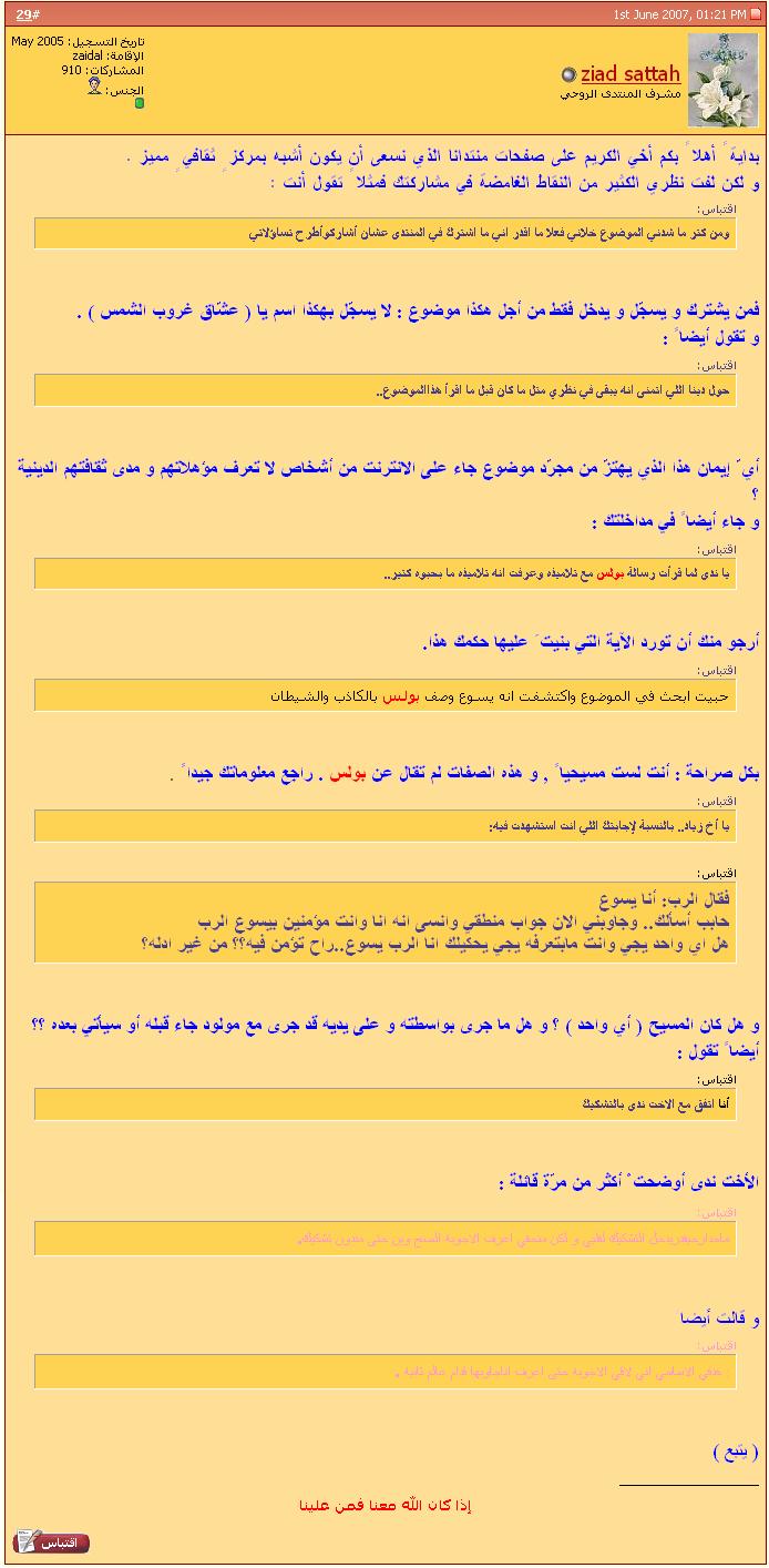 الرد معروف اخي الكريم و صاحب الرد نفسه غير مقتنع بكلامه والا لكان قد أجاب عن الموضوع لكنه يعلم علم اليقين زيف ردوده و التخبط الواضح في الكتاب المدعو زورا مقدس