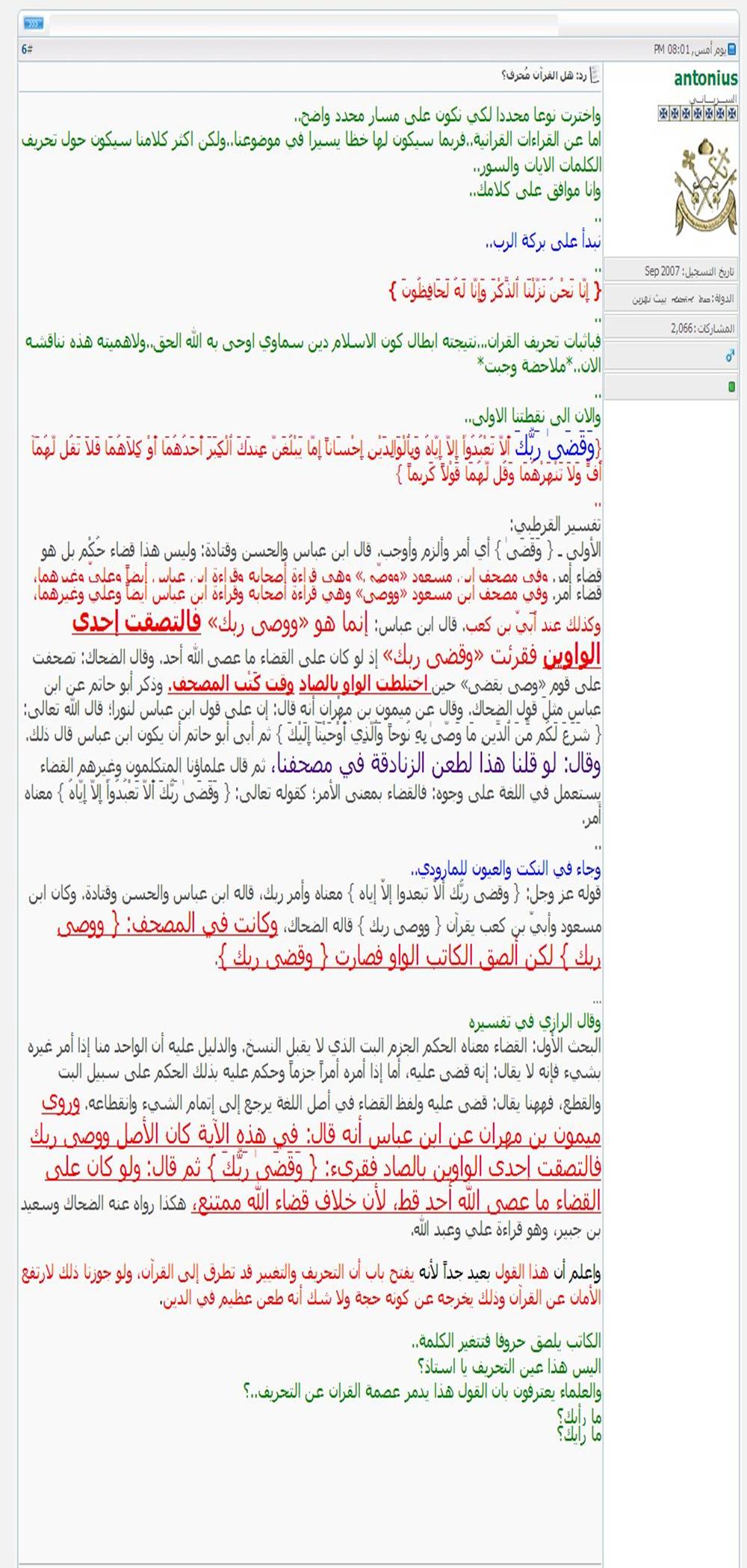 بواسطة Abou Anass في المنتدى شبهات حول القران الكريم