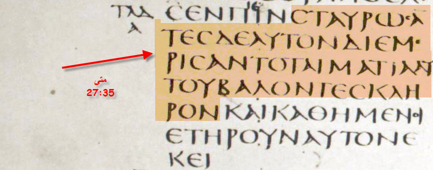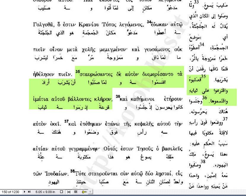 27: 35 و لما صلبوه اقتسموا ثيابه مقترعين عليها