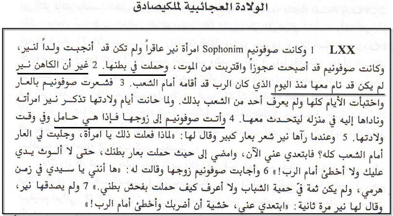 تحت عنوان : الولادة العجائبية لملكيصادق