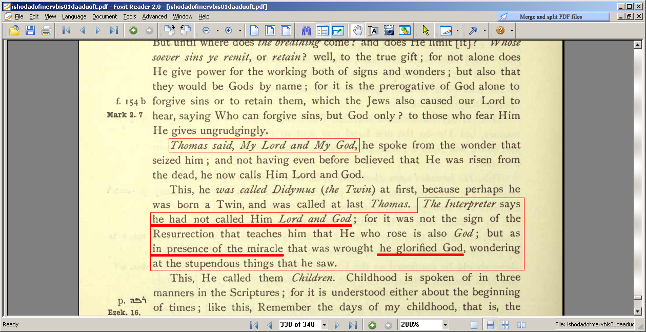 تفسير الأسقف ايشوع داد لنص : {يو 28:20 اجاب توما وقال له ربي والهي}