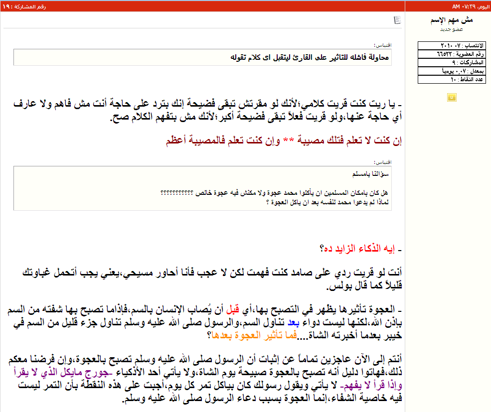 بدون مقدمات مملة,الموضوع بدأ بإن المشرف العزيز صامد,والذي تم سحقه في عقر داره في المناظرة التي تابعتها المنتديات المسيحية في المقام الأول,فتح هذا الخنوص موضوعاً,ونبرة الثقة التي فيه هي التي دفعتني للتدخل,ولولا ذلك,لإستمريت في الضحك عليه وهو يعوي