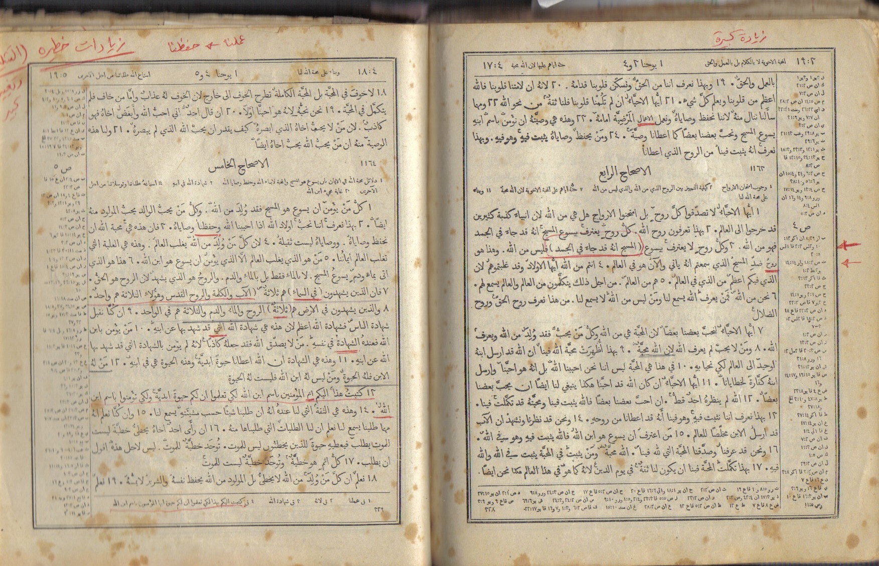 وقد أوردتي صفحة باليونانية وفي أسفلها مكتوب " ما بين المعكوفتين غير موجود في المخطوطات القديمة"