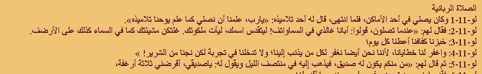 هذا نص الصلاه الربانيه كما ورد فى ترجمه الفاندايك انجيل لوقا الاصحاح 11: