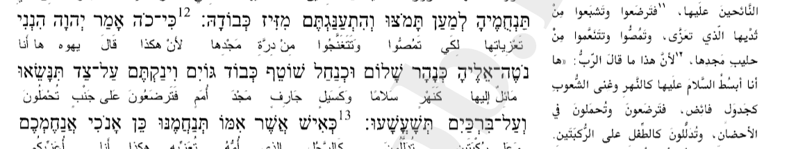 وهي ذات معنى شعري، بدلالة الكلمتين:"כְּנָהָר שָׁלוֹם (كنهر سلام)"، ومعروف ميول الأنهار إذ تشق طريقها الذي تسير فيه، فتتخذ الطريق السهل، وهذا يجعلها تتمايل، وهذا المعنى يذَّكِرُنا بميول الخيم، فيوجد معنى مشترك بين ميل الخيمة، وميل النهر.