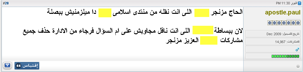 دليل من موضوع آخر نال منه مقص الّرقيب النصراني ، لكن إحنه طبعا لحقنا و وثقنا الفضيحة قبل الحذف ...!