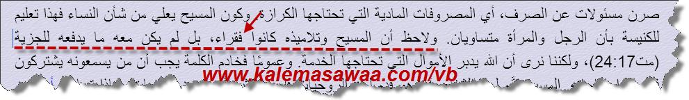 ولاحظ أن المسيح وتلاميذه كانوا فقراء، بل لم يكن معه ما يدفعه للجزية (مت24:17)