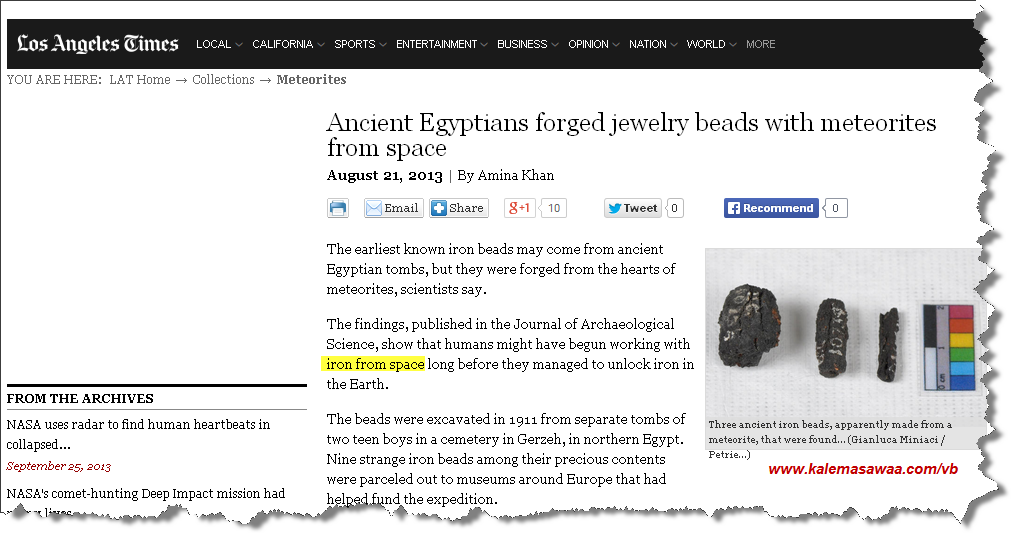 علماء يقولون : الحديد التي وجد في مقابر فرعونية أستخرج انطلاقا من نيازك .