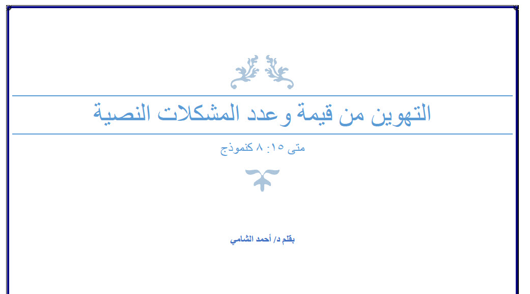 ونماذج لظاهرة التهوين من قيمة المشكلات النصية ، وتوضيح مدى خطورة هذه المشكلات