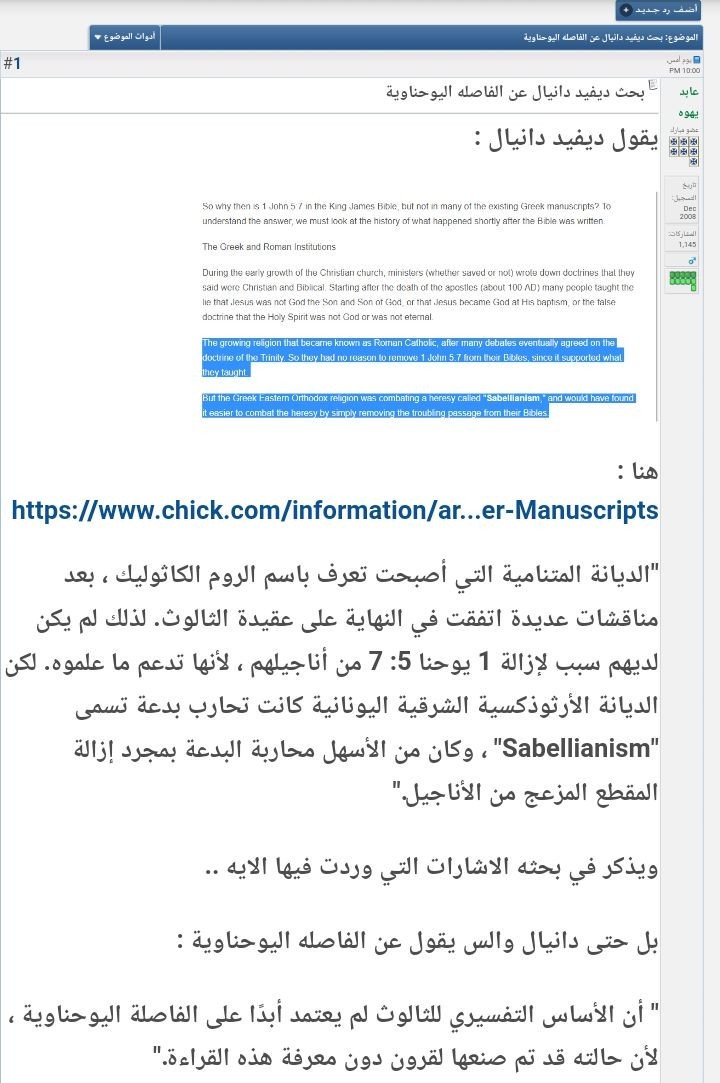 فهو لا يستند الى حقائق مبنية على أبحاث و شهادات لكبار علماء النقد النصي كما وضحنا و كشفنا على أيدي علمائهم عوَّار النصوص المضافة بقصد لتدعيم فكر لاهوتي