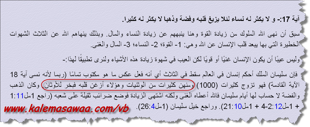 آية 17:- و لا يكثر له نساء لئلا يزيغ قلبه وفضة وذهبا لا يكثر له كثيرا.