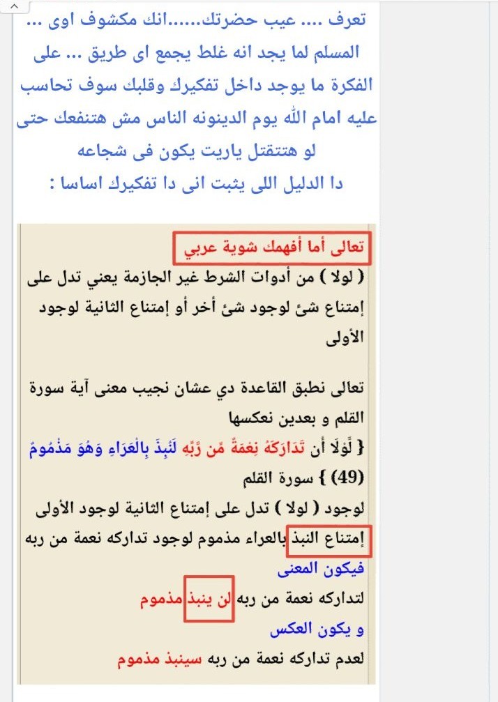 ثالثا : مصيبه بتقول كلام التفسير مختلف عن التحدى وانى الفيصل فى تداركه نعمه من ربه هو حضرتك مش شايف لولا اللى فوق دى
