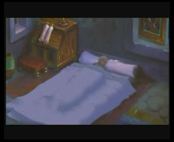 نجد فى المشهد صورة كاملة لغرفة أبوطالب وقد مات على فراشة على الأرض وعلى يمينه مكتب خشبى