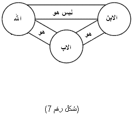 نلاحظ من الشكل توحيد الاقانيم فى ذات الله (حاشا لله) عكس ما قاله يوحنا "ان ابي اعظم مني (يو 14 : 28)"