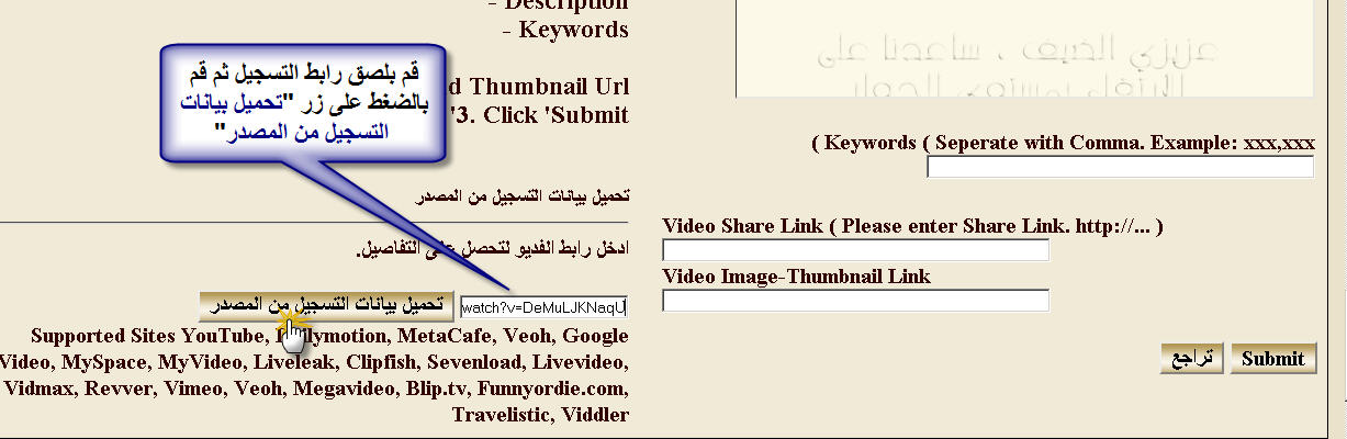 مكتبة الفديو متاحة للتصفح لجميع الأعضاء ولكن الأضافة متاحة لبعض الاعضاء وعلى هذا فإن تطبيق طريقة الأضافة لم تعمل مع الأعضاء الغير مصرح لهم بأضافة التسجيلات.