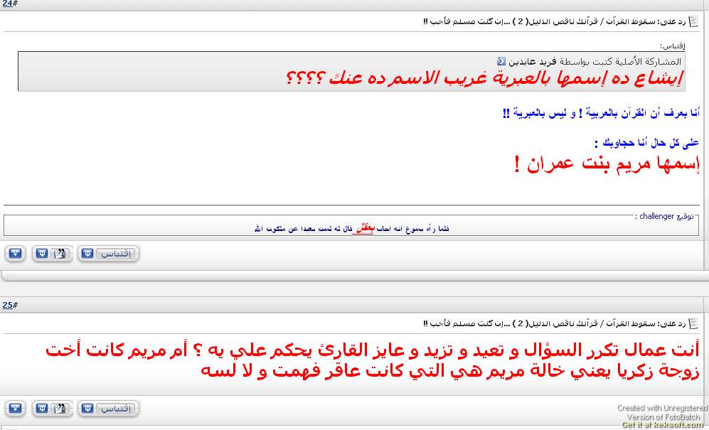 يا بني إفهم عشان خاطري أم مريم اللي هي زوجة عمران هي اللي قصتها مذكورة هنا و بعدين زكريا بيتمني ولد مع إن مراته عاقر اللي هي اليصابات حد هنا جاب سيرة أن مريم بنت عمران هي اللي عاقر ؟؟؟ أنت فعلا مش طبيعي لو مش فاهم كل ده