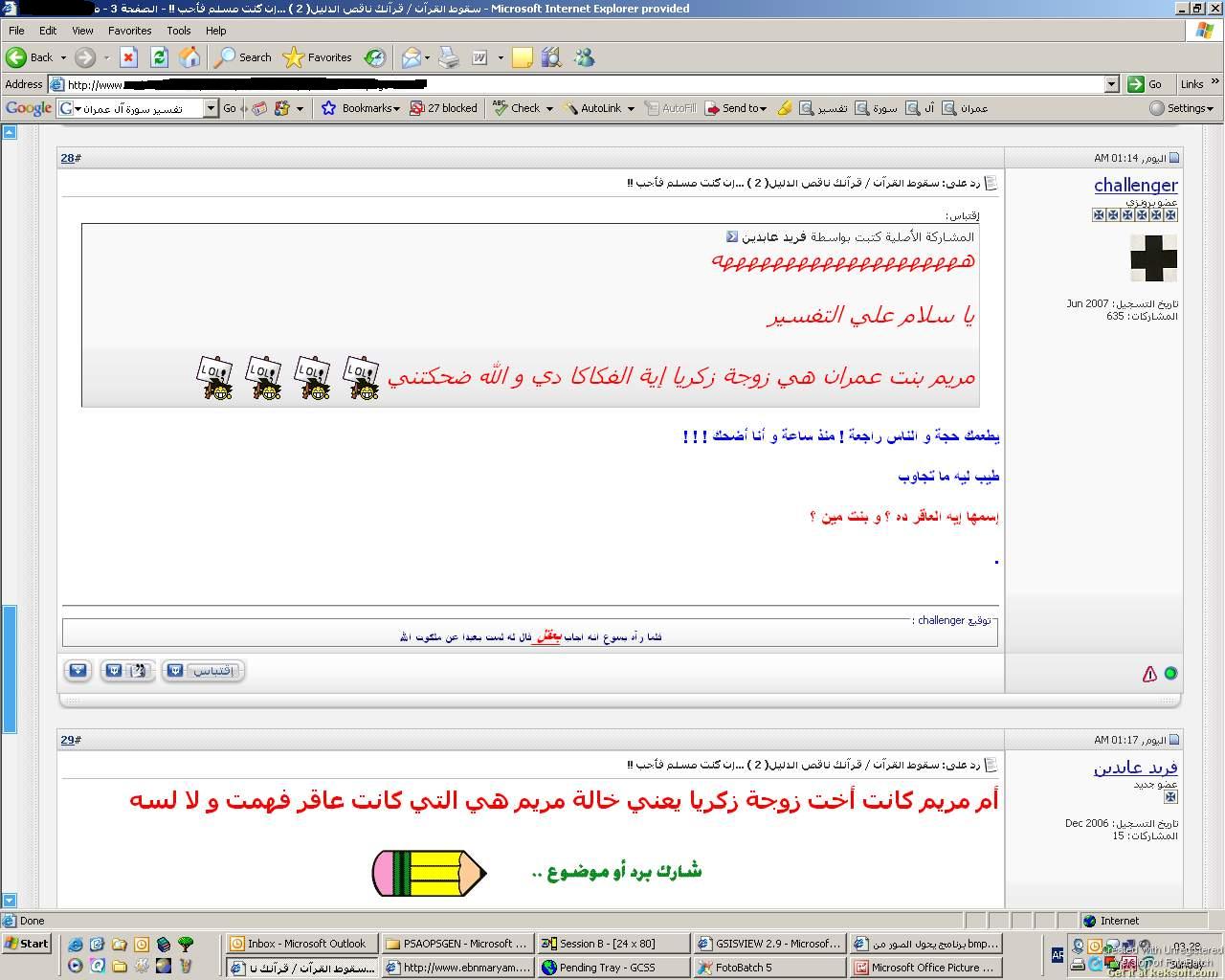 وكنت كل ما ار يدة من على منتداهم هو منا ظرة انسر مى لا انة اكثر هم فى الا ساءة والتدليس ولا اثبت لة ان اقل المسلمين علما يستطيعوا فضحة وانة عبارة عن _ _ _ _ ليس الا