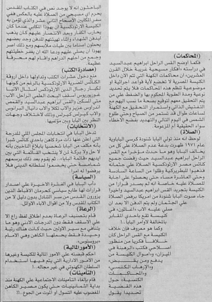 * الخطايا العشر للأنبا شنودة *هذا العنوان لهذه الصور القديمة نوعاً ما من أحدى الجرائد المصرية ولو كنت شخصياً سأذكر خطايا شنودة لتجاوزت عدة كتب فيه ولكن عليه من الله ما يستحق فلا داعى لاضاعة الوقت فيمن مات .. ولقد رأيت أنه يجب أن أضع هذه الصور الان لما نراه هذه الايام من تعدد صور تأليه البشر فأردت أن يطلع عليها كل شخص مسيحي أو مسيحية لديهم عقل يفكرون به ليعرفوا أن القوانين الكنسية هى قوانين وضعيه من وضع البشر وليست وحى إلهي كما يخدعهم القساوسة .. نسأل الله الهداية لنا ولكل ضيوفنا والمتابعين لنا من المسيحيين المحترمين