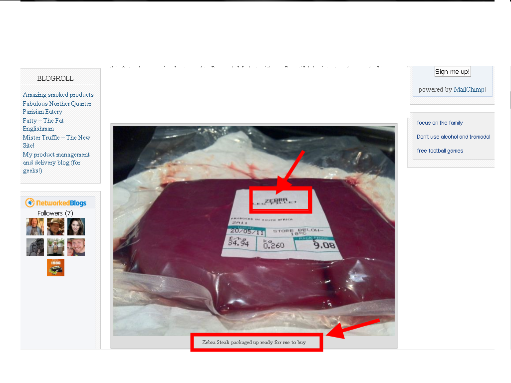 وهاهي صورة لحم الحمار الوحشي تعرض للبيع في الحلات التجارية الكبرى :