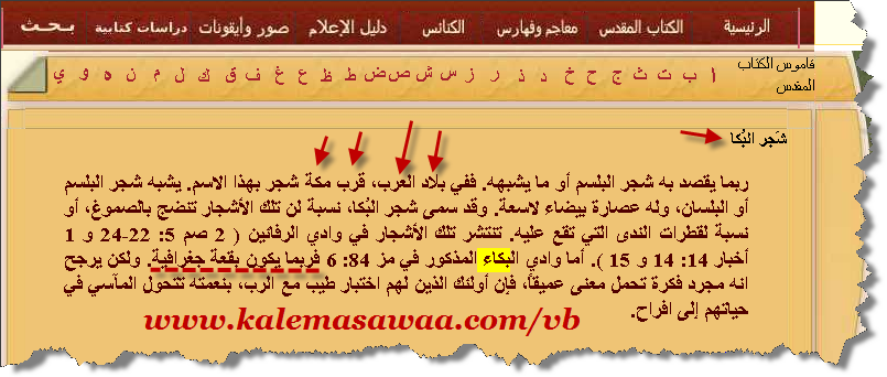 بخصوص معنى Baca ، نقرأ في قاموس كتاب النصارى المقدس :