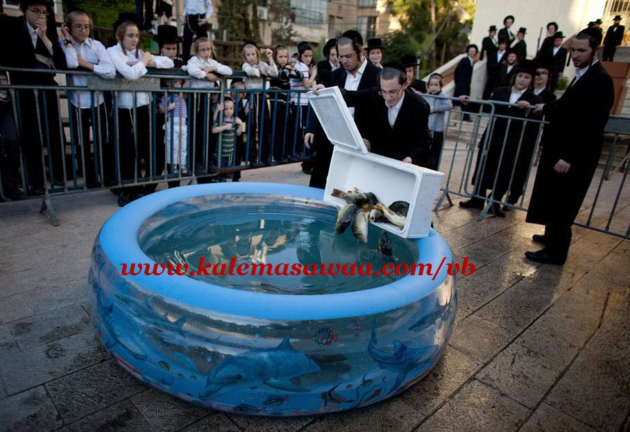 خلال هذا الطقس الغريب يقوم اليهود برمي بعض الأطعمة (كالخبز و السمك ) في الماء إعتقادا منهم أنّ ذلكَ يغفر الخطايا و يكفّرعن الذنوب ،