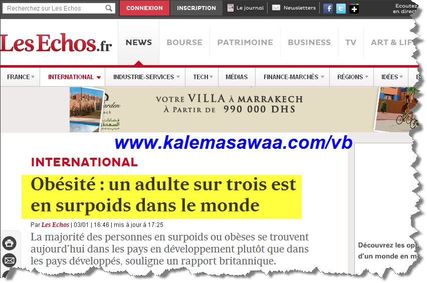 ثلث 1/3 سكان العالم البالغين مصابون بالسُّمنة .