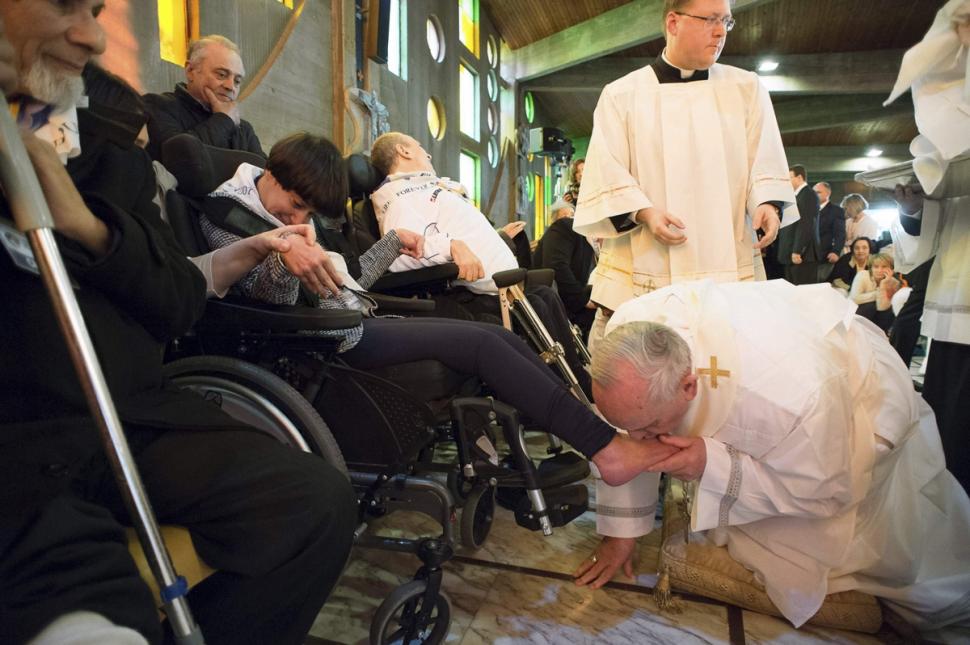 متخذًا من طقس "غسل الأرجل" كـ"وسيلة للتعبير عن قبوله للآخر"، على حد تعبير الوكالة "الكاثوليكية" للأنباء.