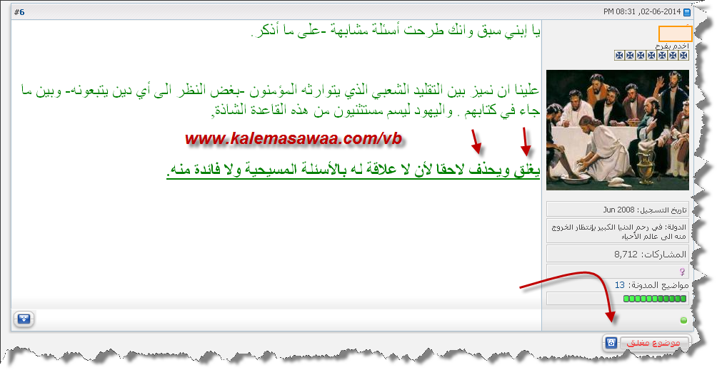 أغلقت الموضوع مخافة دخول عضو مسلم فيصفعهم بنص خروج 13 :13 أعلاه ،