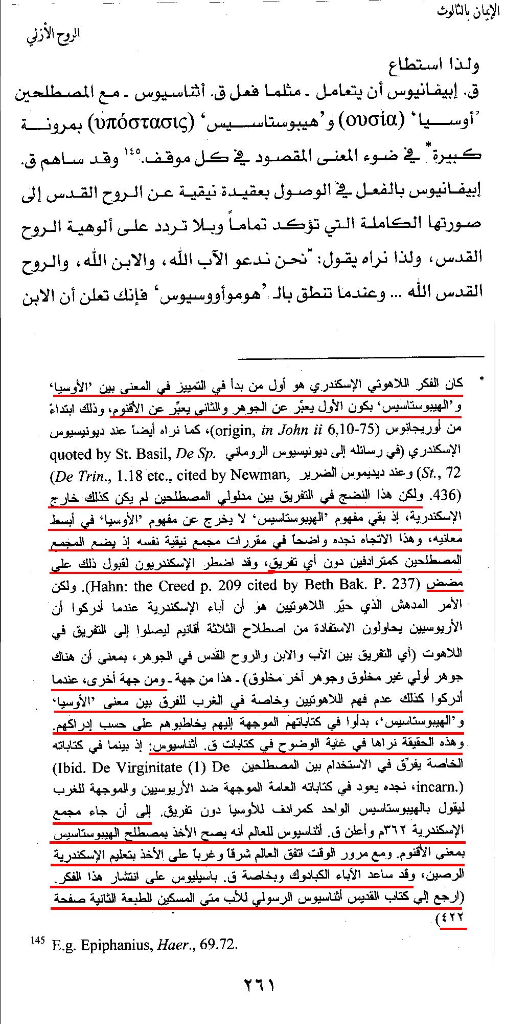 فالآب و الأبن لا يمكن أن يكونا واحد فى الجوهر أو مساو له فى الجوهر لأن كلمة الجوهر و المساواه فى الجوهر أصلاً غير موجودتين في النص و لم تكونا معروفتين و لم يقول أو يصرح بهم المسيح أبداً
