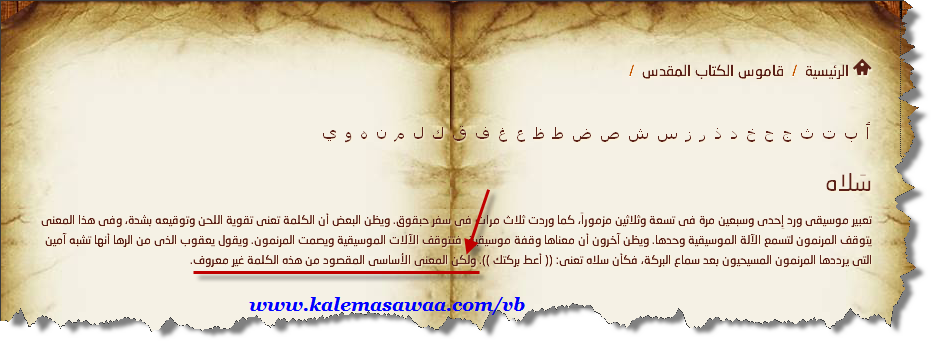 كلمة تكررت كثيراُ في سفر المزامير وكذلك في سفر حبقوق 3 : 9 – 13 بواقع 74 مرة في الكتاب المقدس . ومعناها أمر مشكوك فيه ، فسرها بعضهم على انها الصمت أو التوقف ، وبعضهم " النهاية " .... الخ .