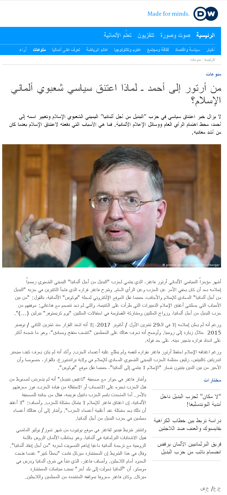 الموضوع: من أرتور إلى أحمد : لماذا اعتنق سياسي شعبوي ألماني الإسلام؟
