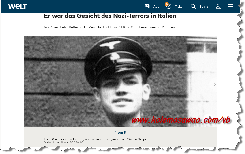 النّازيErich Priebke الملطّخة يداه بدماء الأبرياء إرتكب جرائم وحشية في حق مدنيين بإيطاليا الفاشية ، و بفضل الوثائق المزوّرة التّي منحته الكنيسة الكاثوليكية تمكّن من الإفلات من العقاب عقب محاكمات نورنبيرغ الشّهيرة بعد هروبه للأرجنتين تحت إسم وهوية جديدين !