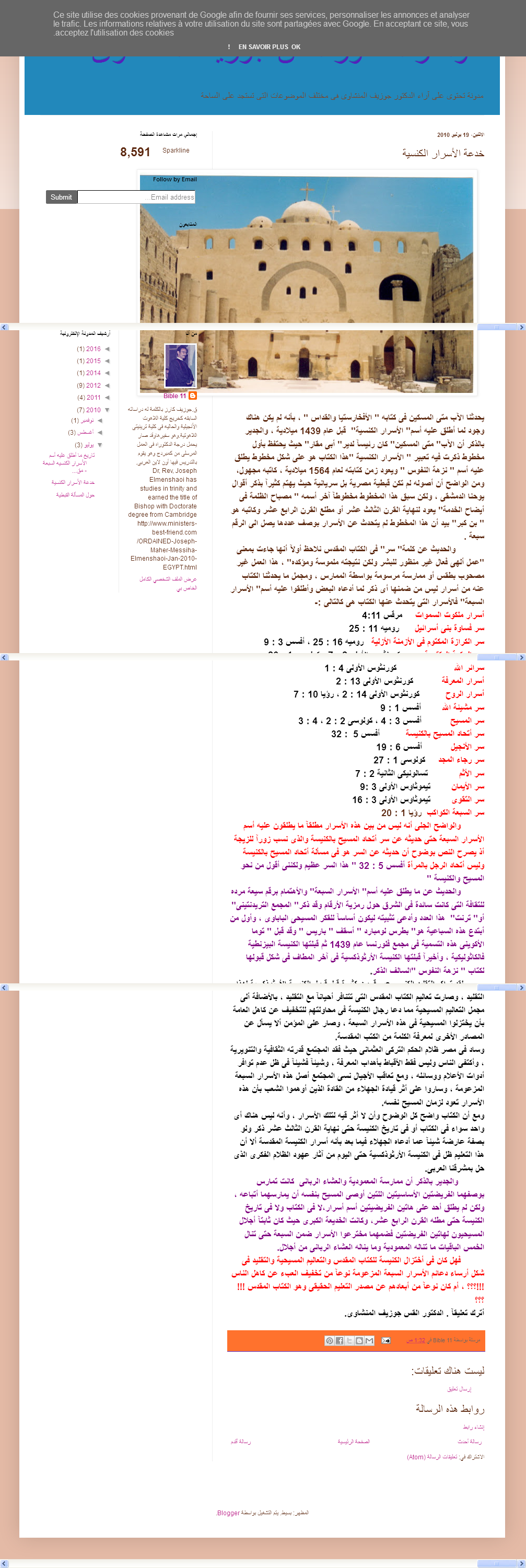 ومع أن الكتاب واضح كل الوضوح وأن لا أثر قيه لتلك الأسرار ، وأنه ليس هناك أى واحد سواء فى الكتاب أو فى تاريخ الكنيسة حتى نهاية القرن الثالث عشر ذكر ولو بصفة عارضة شيئآ عما أدعاه الجهلاء فيما بعد بأنه أسرار الكنيسة المقدسة ألا أن هذا التعليم ظل فى الكنيسة الأرثوذكسية حتى اليوم من آثار عهود الظلام الفكرى الذى حل بمشرقنا العربى.