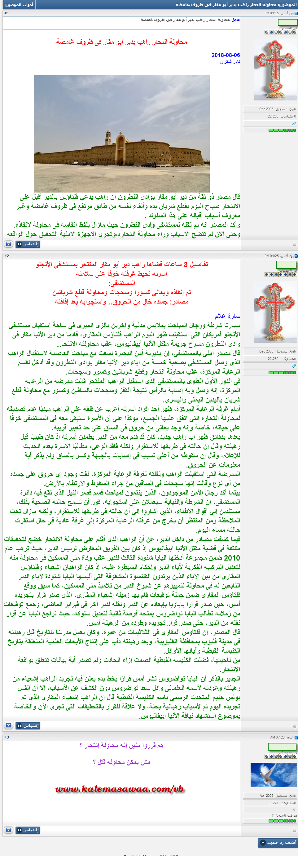 المنتديات التنصيرية ركّزت فقط على محاولة الإنتحار الثانية الخاصة بــالراهب فلتاؤس المقاري !