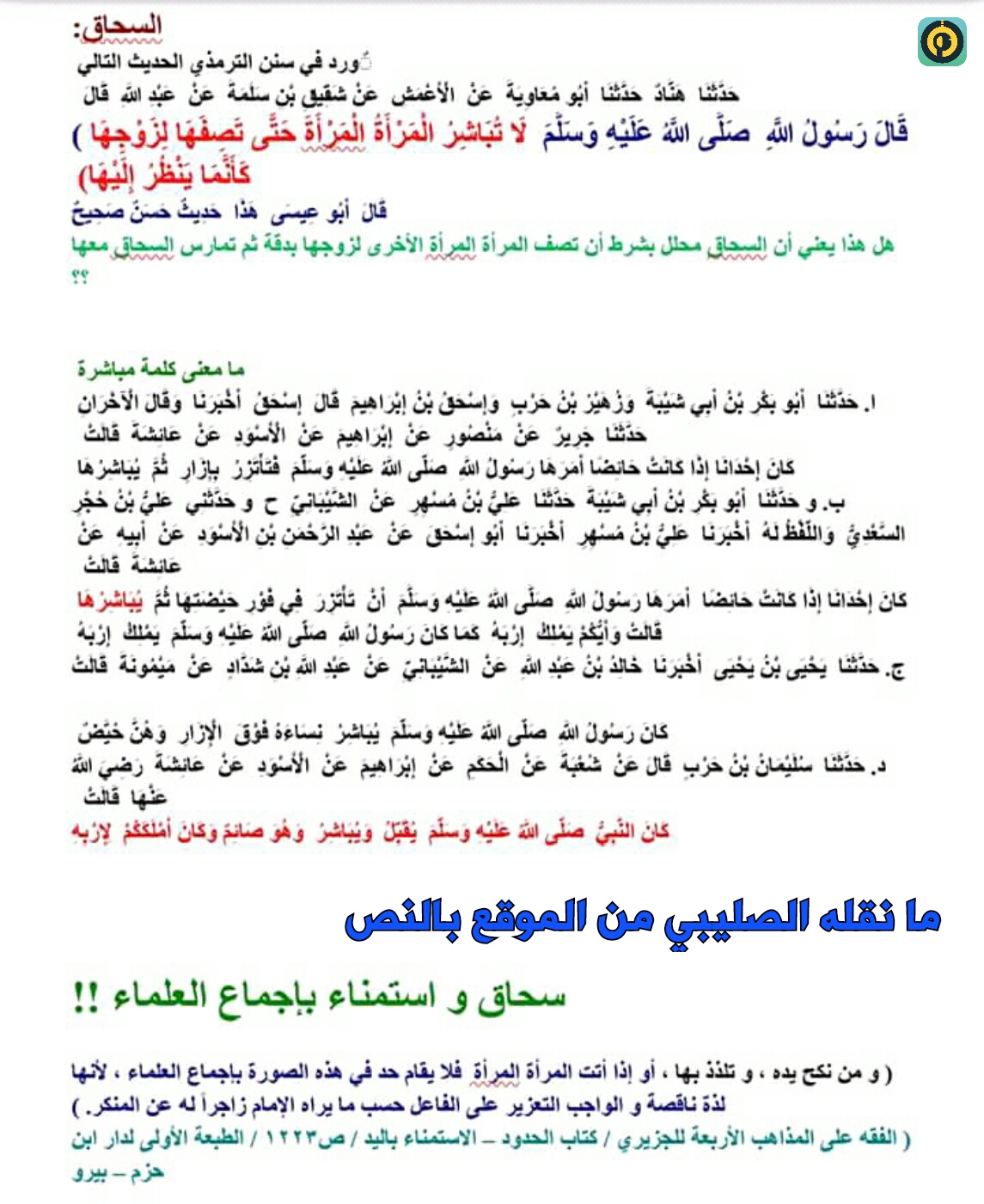 و اختم تلك الجزئيه بحرمت السحاق بنص كلام النبي
