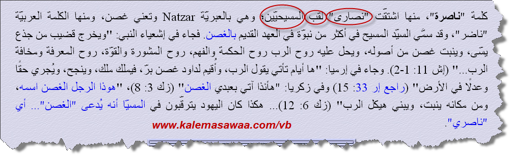 كلمة "ناصرة"، منها اشتقّت "نصارى" لقب المسيحيّين