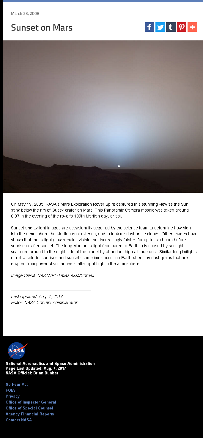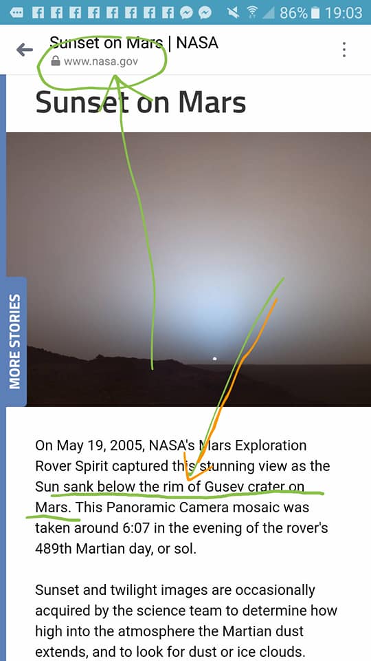 وكالة الناسا نشرت في 15 ماي 2005 صورة تقول فيها التقطنا صورة للشمس تغرب تحت كوكب المريخ