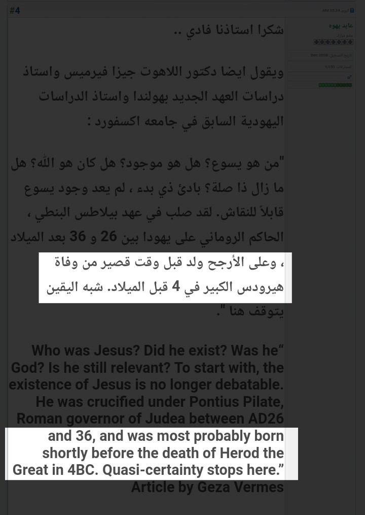 و من ضمن فكهاتك و عجائبك أنك تستشهد بمن يقول أنَّ يسوع ولد قبل ميلاده بأربع سنوات يعني بتستشهد ضد نفسك