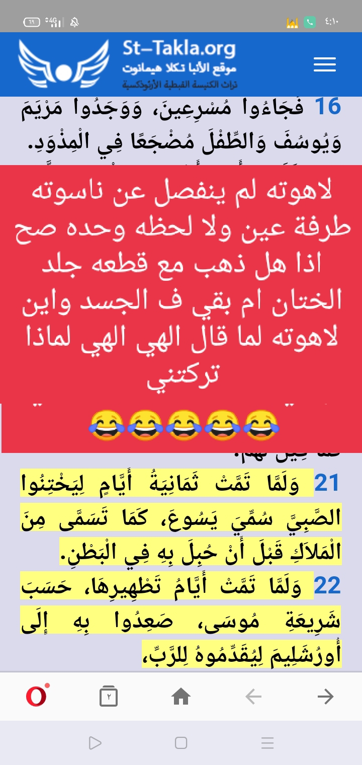 افتراضي لاهوته لم ينفصل عن ناسوته طرفة عين ولا لحظه وحده صح اذا هل ذهب مع قطعه جلد الختان ام بقي ف الجسد واين لاهوته لما قال الهي الهي لماذا تركتني