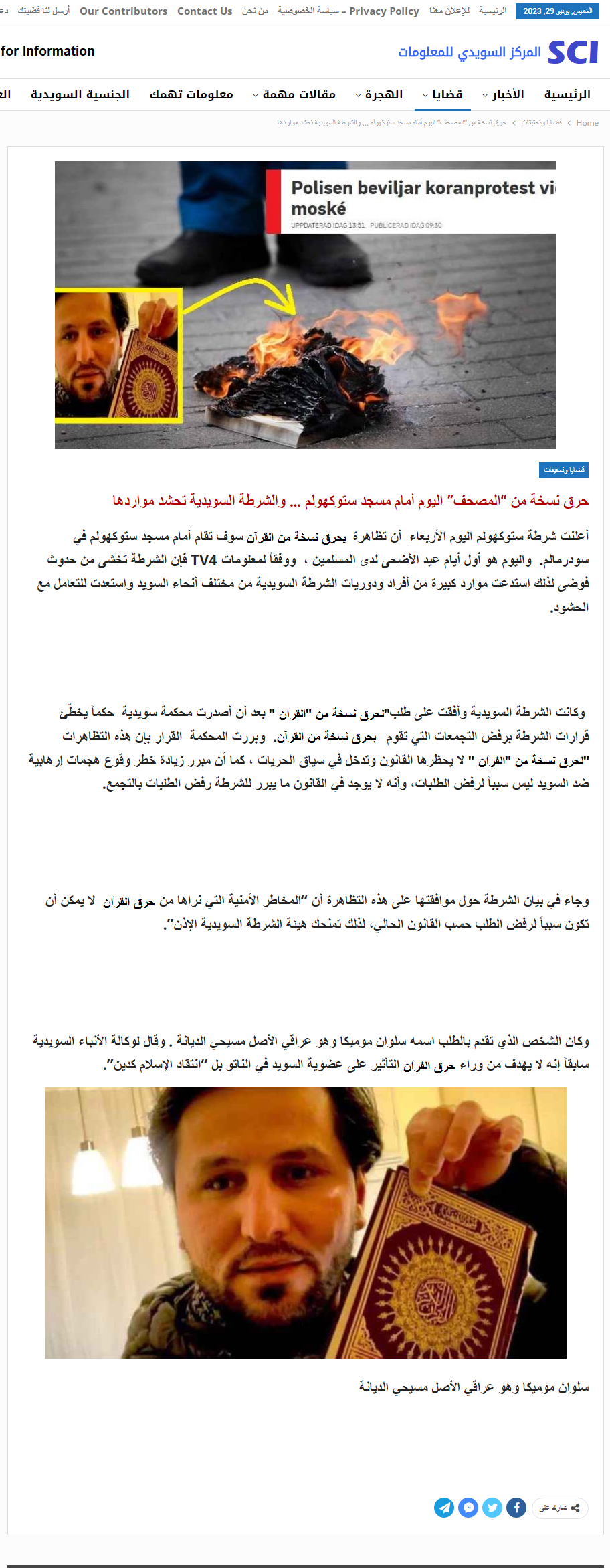 نقرأ من موقع المركز السويدي للمعلومات المعروف اختصارا ب إس .سي .إي (SCI) :