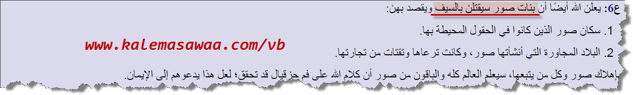ع6: يعلن الله أيضًا أن بنات صور سيقتلن بالسيف ويقصد بهن: