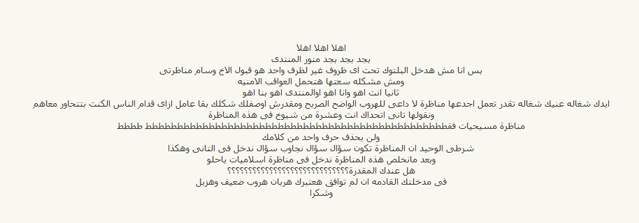 بس انا مش هدخل البلتوك تحت اى ظروف غير لظرف واحد هو قبول الاخ وسام مناظرتى ومش مشكله سعتها هتحمل العواقب الامنيه