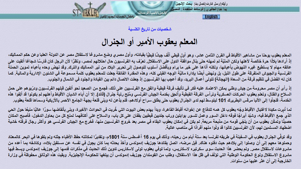 أحد المواقع الرسمية للكنيسة القبطية الأرثوذكسية تشيد بالخائن المعلم يعقوب و تصفه "بالشخصيات القبطية":