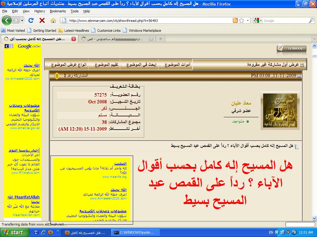 المهم والمشكلة الاكبر ان دى إعلانات جوجل وبتتغير باستمرار بس الثابت فيها وجود اعلانات لمنتديات تبشرية